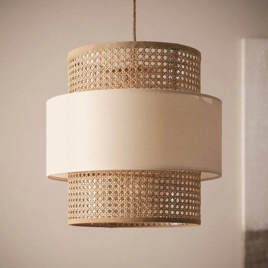 Lámpara Colgante Amia R, Elaborada a Mano con Tela y Ratán Natural.