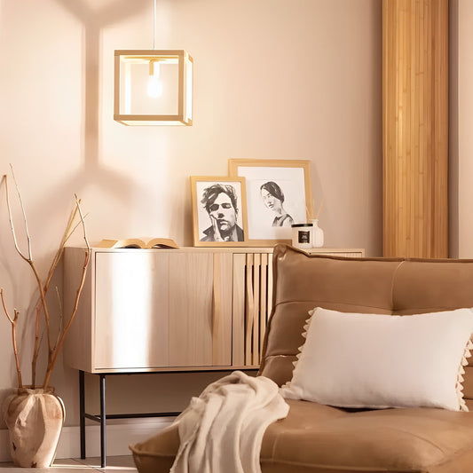 Lámpara colgante colección Arhat, elaborada a mano con madera.