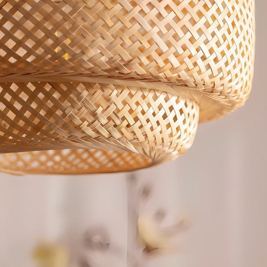 Lámpara colgante Bimbisara, elaborada a mano con bambú natural.