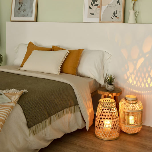 Lámpara colección Indira, elaborada a mano con bambú natural.