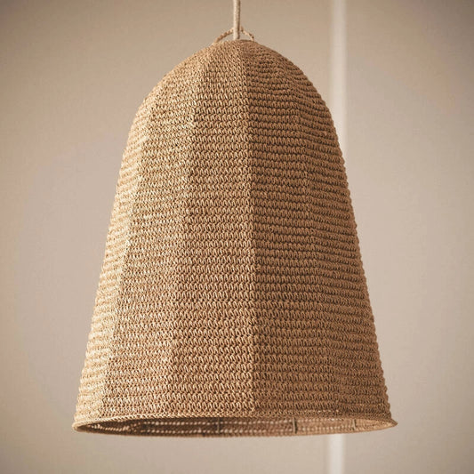 Lámpara Colgante Amhati, elaborada a mano con Papel Trenzado de Fibras Naturales.