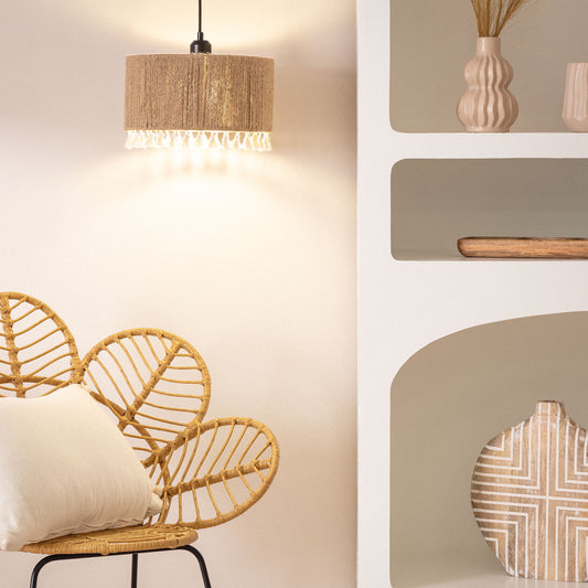 Lámpara Colgante Aysha, elaborada a mano con Ratán Natural.